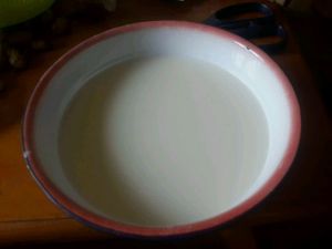 将1和2混合,并用筛子过滤两次,做成皮浆,静置30分钟