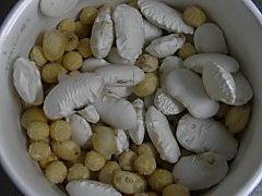 把猪蹄、扁尖、芸豆黄豆、葱姜、料酒全放到电压力锅,开到煲汤上。