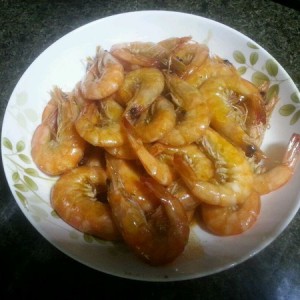 热锅下油,(油要多一点)大火下虾把虾焖煎到虾壳微焦,翻面,同样焖煎到虾壳微焦。