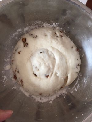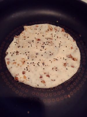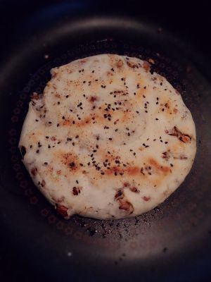 大约半小时的样子,取出用手按压合适大小,锅中放少许油,开始烙饼