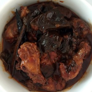 然后放入清水,加两勺老干妈豆豉,最后放入茄子,炖10—15分钟,开锅,翻动一下,准备收汁
