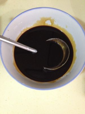 将1汤勺料酒、2汤勺酱油、3汤勺白糖、4汤勺醋调成糖醋汁。