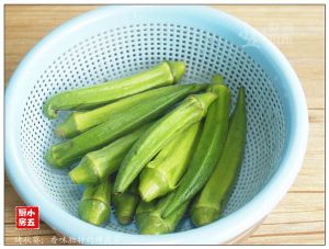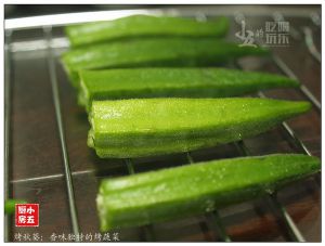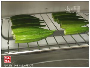 烤箱预热220℃,将秋葵放入烤箱中层。