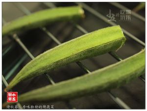 取出烤好的秋葵,食用时撒点椒盐即可食用。