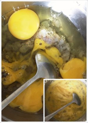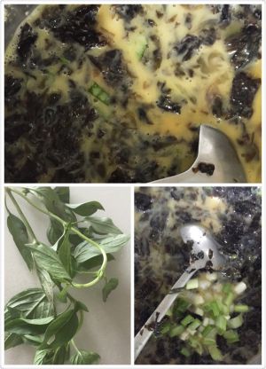 把准备好的葱花、金不换切碎,加入少许在蛋液里,搅拌均匀,加入适量的鱼露调味(这里说明一下,可以同时加入金不换和葱花,或者选择其一加入也可以)