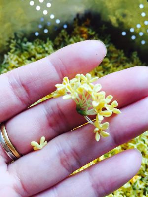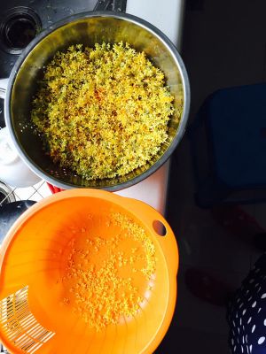 桂花最好摘整个的,容易一次拧下来,注意不要拧碎花朵,花朵受伤就变黑