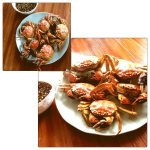 酱汁。老醋,姜,蒜。螃蟹大寒体虚者少食,应多食姜,适量温酒