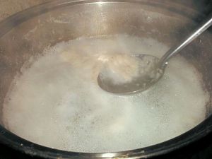倒入葱姜,加入适量食用盐~搅均匀~继续煮会儿
