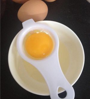 准备两个干净无水滴的盆;蛋清和蛋黄分别放入两个盆里。首先蛋黄盆里放玉米油、酸奶、低筋粉、玉米淀粉;翻拌均匀!不能画圈搅拌,要像炒菜一样拌!(如果不均匀可以用小滤网滤一遍)