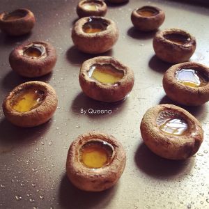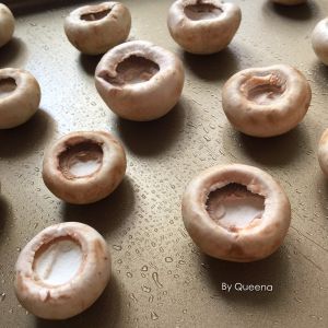 烤盘刷一层橄榄油,蘑菇去蒂洞口朝上摆放在烤盘上,均匀的撒上盐,黑胡椒粉根据个人喜好选择放,不放的话比较原味。烤箱预热200度,烤十分钟左右。