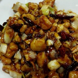 把鸡腿切成鸡丁,(腌制)把鸡丁放淀粉少许盐和蛋清抓匀,滑油(把腌好的鸡丁,放入热油锅里过一下)捞出控油,锅中放油,油热放花椒、干辣椒、郫县豆瓣酱、姜炒香后放糖、醋、老抽翻炒均匀放鸡丁葱段,勾芡,放花生米超均匀即可。