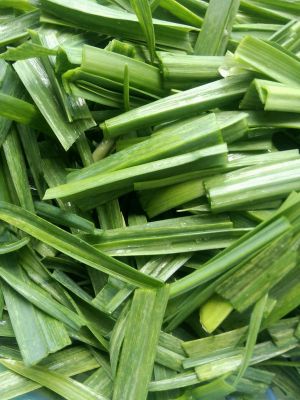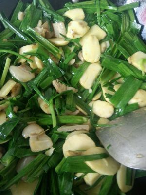 茨菇炒了完全熟了再加蒜叶,蒜叶大部分变软变色后加勺盐调味,翻炒几下加味精就可出锅