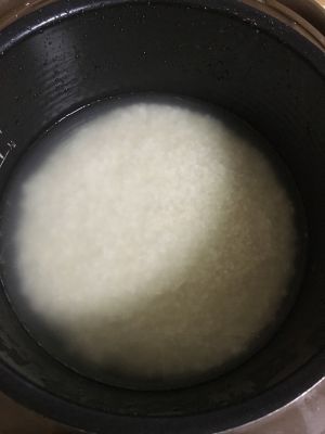 电饭煲里加米,水加得跟平时煮饭差不多,如果有加番茄的话水就要少放点哦