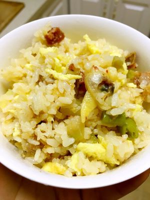 大概15分钟后饭就好了,具体时间要看自己的电饭煲来,打开盖子倒入之前炒好的鸡蛋,榨菜粒搅拌均匀就好了!因为有孩子没有加辣椒,如果自己吃的话拌上辣椒酱或者韩国泡菜,超级好吃,关键简单。
