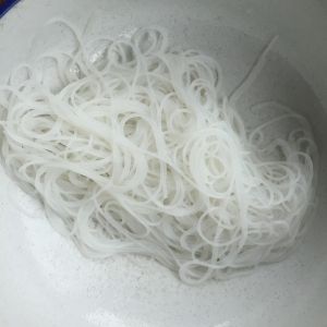 菜炒片刻后加入炖好的牛肉汤 再加少量水 汤水比例2:1,中小火慢炖,此时可根据口味调盐味精,醋不够可加醋,之后放入粉丝