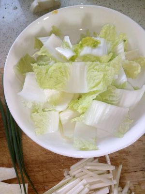 白菜取菜帮切成小块。