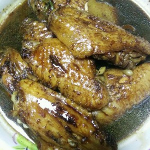 鸡翅洗净,面切穿,加生抽,黄酒,蒜,姜腌制几小时(腌制料放入鸡翅后可以用手用力抓10分钟,这样按摩后的鸡翅会比较软嫩)
