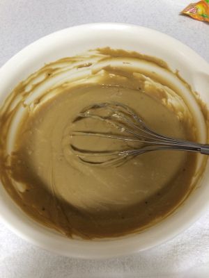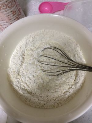 先将面粉、泡打粉和牛奶搅拌均匀。