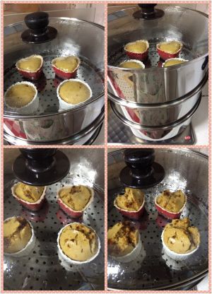 将面糊分别倒入容器中,水开后,大火上锅蒸15分钟左右,切忌中途开锅盖,关火后,焖五分钟再掀盖。