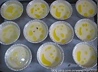 朗姆酒浸泡过的蔓越莓干和葡萄干放在模具底部.