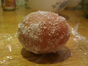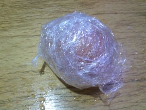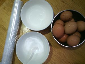 像这样,用保鲜膜把弄好的鸡蛋包裹起来