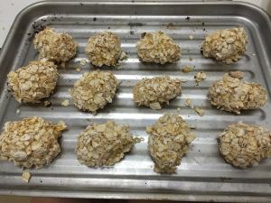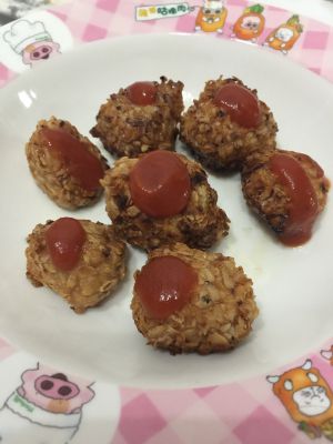 最后,你要不就裹上燕麦片炸,要不你就裹上面包糠烤(面包糠忘了照)