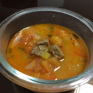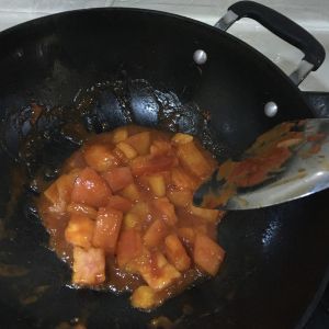 加水盖过西红柿,烧开后加入过水的牛肉,根据口味加入百里香叶,小火煮半小时。