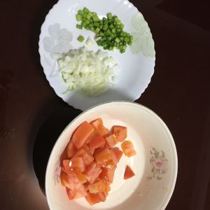 西红柿切小块,洋葱剁碎,芹菜切小丁。加橄榄油炒洋葱,洋葱软后加芹菜翻炒盛出备用。