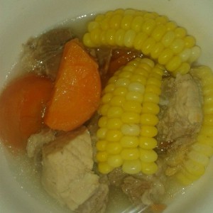 红萝卜洗净切大块;玉米洗净切大块;姜洗净切片。