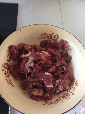 首先最好提前买牛肉,放冰箱把牛肉处于半冻状态,然后切条,放入辣椒、辣椒面、孜然、孜然粉、芝麻、盐(也可适当放些烧烤料),戴上一次性手套搅拌,盐多少可根据口味自己调!