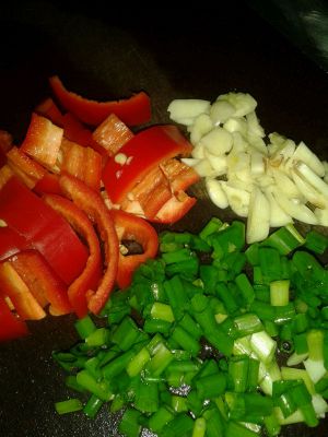 红辣椒去蒂洗净,切块;蒜切丁;葱洗净切葱花。