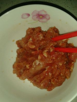 瘦肉洗净,剁成肉糜,放入碗中用生抽、少量盐腌制一下。