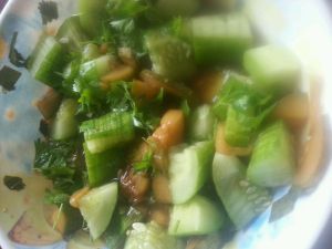 最后加入香菜促进,珍选捞汁.盐.(深色的是我冷藏一天之后得)