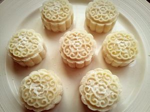 把包好的月饼放膏粉里转一圈,去掉多余的粉,准备好模具(我的是在烘焙店买的最小号(^_^))。用模具压好型,轻轻取出就完成啦。放冰箱冷藏之后才更美味喔