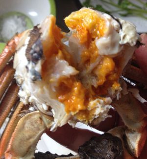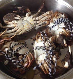 蟹洗刷干净冷水上锅煮15分钟,实际上用了两个雄蟹。