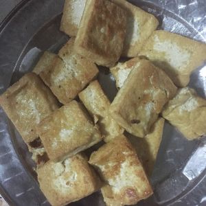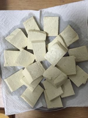 豆腐洗净,切块,厨房纸巾蘸干