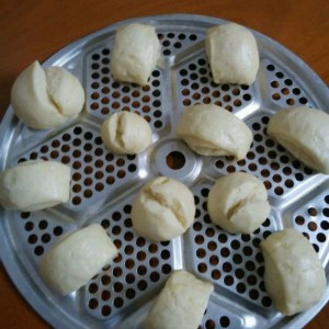 锅里烧开水,把装满馒头的蒸盘放进锅里隔水蒸15分钟!出锅!!