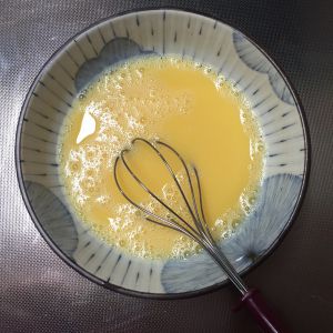 鸡蛋打到碗里。加温水(一定不要加凉水或开水,约40度凉白开),一份鸡蛋,1.5份水(用蛋壳量)。打匀。加盐、五香粉、生抽、香油、虾皮(盐和香油必加,其他根据自己口味,不喜欢可不加)。