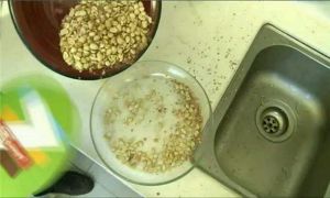把花生从一个容器倒进另一个容器,用扇子从旁边给它扇风,这样就能轻松去除花生皮了。