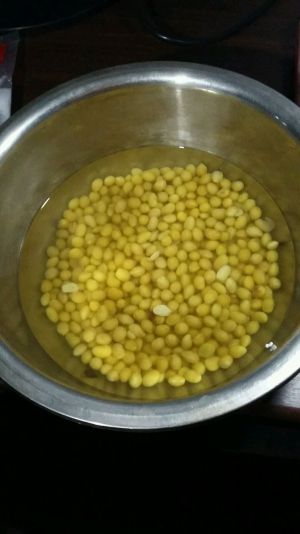 大豆200克,用适量水浸泡,夏天4-6小时,春秋8-10小时,冬天10-12小时。