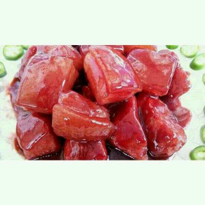 带皮后腿肉切肉方冲洗干净控水份加入少许盐(南乳汁是咸的,盐多肉会咸)