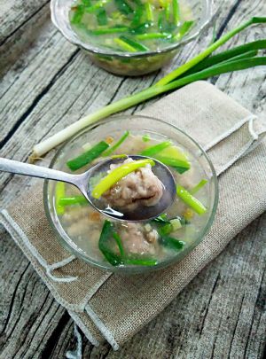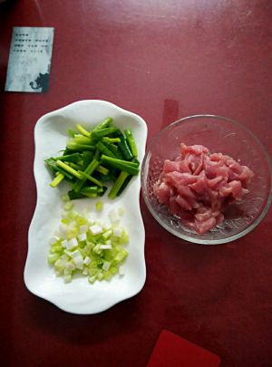 葱叶和葱白分开,葱叶切段、葱白切丁、瘦肉切条切片都可以,不能太厚