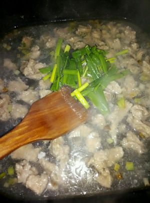 煮沸掀盖子撒上葱叶继续煮一分钟即可