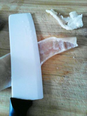 把猪皮里面的肥肉刮净