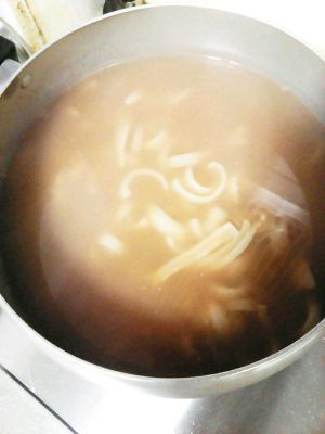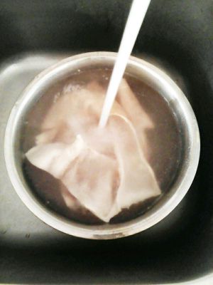 一个半小时,汤非常的白了,放入一点生抽,主要是为了上色的,喜欢白色的冻冻可以不需要放生抽,倒入器皿中放凉,放入冰箱中一晚