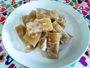 做好的冻冻,吃多少切多少,蘸汁吃,香辣Q弹
