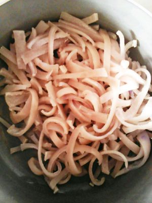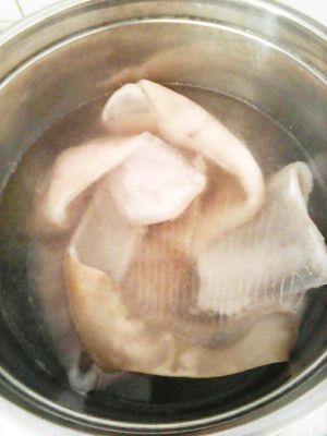 猪皮用沸水焯一下