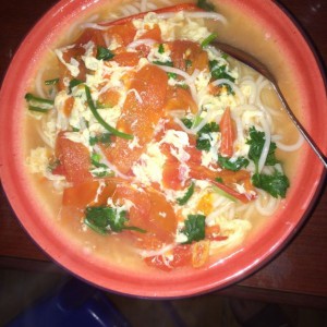 西红柿切块水煮开加入西红柿,煮制西红柿脱皮,下面,这时就可以打鸡蛋 (不用加水),面煮熟了加盐,加鸡蛋(在水开的地方浇鸡蛋这样口感好),关火,放香菜,就做好了