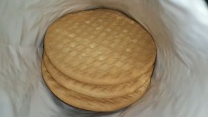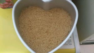 第三步:把浸好椰子油的饼干碎倒进模具中压实,放入冰箱冷藏