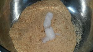 第二步:加入椰子油,把饼干碎浸透,选择椰子油是因为有营养,不用怕胖,吃了很健康